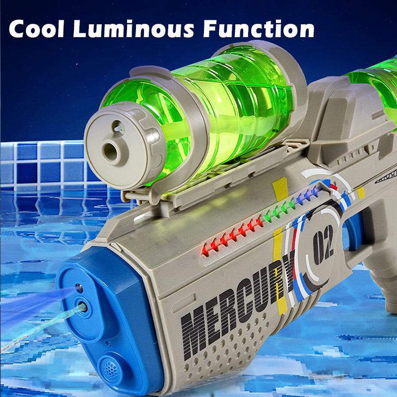 Get ready for epic water battles with the Mercury 02 Fully Automatic Luminous Water Gun! This high-performance water gun is designed for ultimate fun and excitement, day or night.