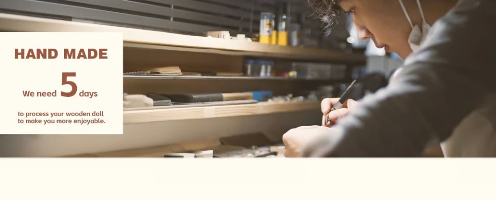 Each wooden doll takes five days to make to ensure it brings you happiness in the best condition.