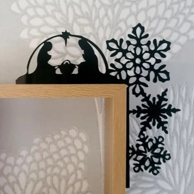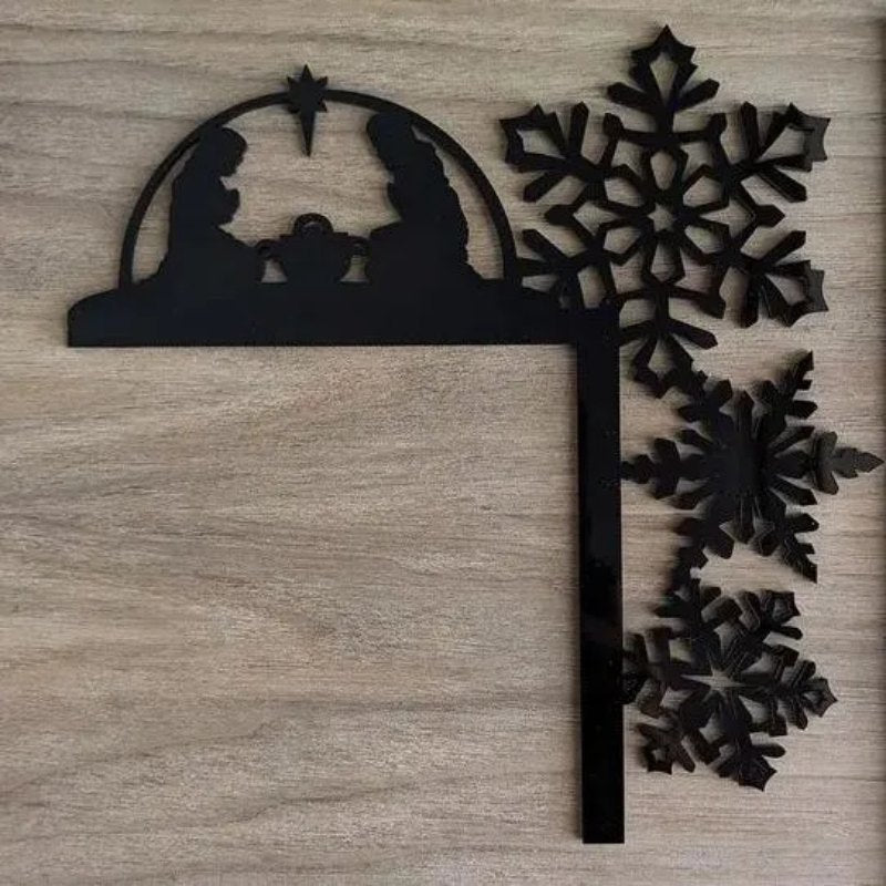 ✨The Door Topper includes a Creche with Mary, Joseph and Baby, a sheep and a donkey. Each creche is adorned with a radiant North Star, elevating the enchantment of your nativity scene.